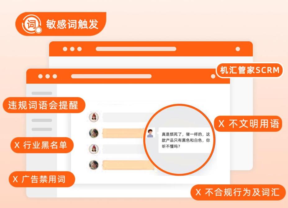 企业可设置风险词库(如竞争对手名称、私下交易、虚假承诺等),当聊天中出现相关词汇时,系统可自动提醒管理者或触发预警。这既规范了销售沟通,也降低了企业合规风险。