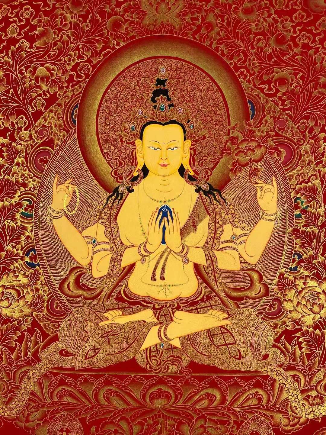 接下来请朋友们欣赏一组沃唐卡编号为155-902147的四臂观音唐卡: