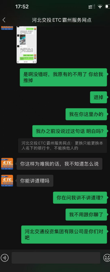 近日,本站接到河北廊坊车主王先生(化名)投诉,反映其在霸州南收费站办理ETC业务时遭遇不愉快经历,质疑该办理点“换人就得交钱”的要求涉嫌重复收费,属于霸王条款。王先生称,他在下高速时被收费站工作人员拦下推荐办理ETC,当场缴纳约300元设备费,后续因个人信息变更需更换设备时,却被要求再次缴纳200元,理由便是“换人就得给钱”。