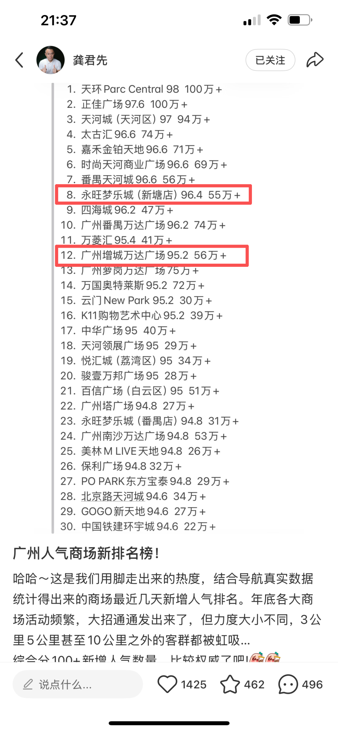 黄埔的山姆要2028年底营业,但增城商业并不差!网友统计元旦近一周的广州商圈,增城有两大商圈上榜:永旺和增城万达。