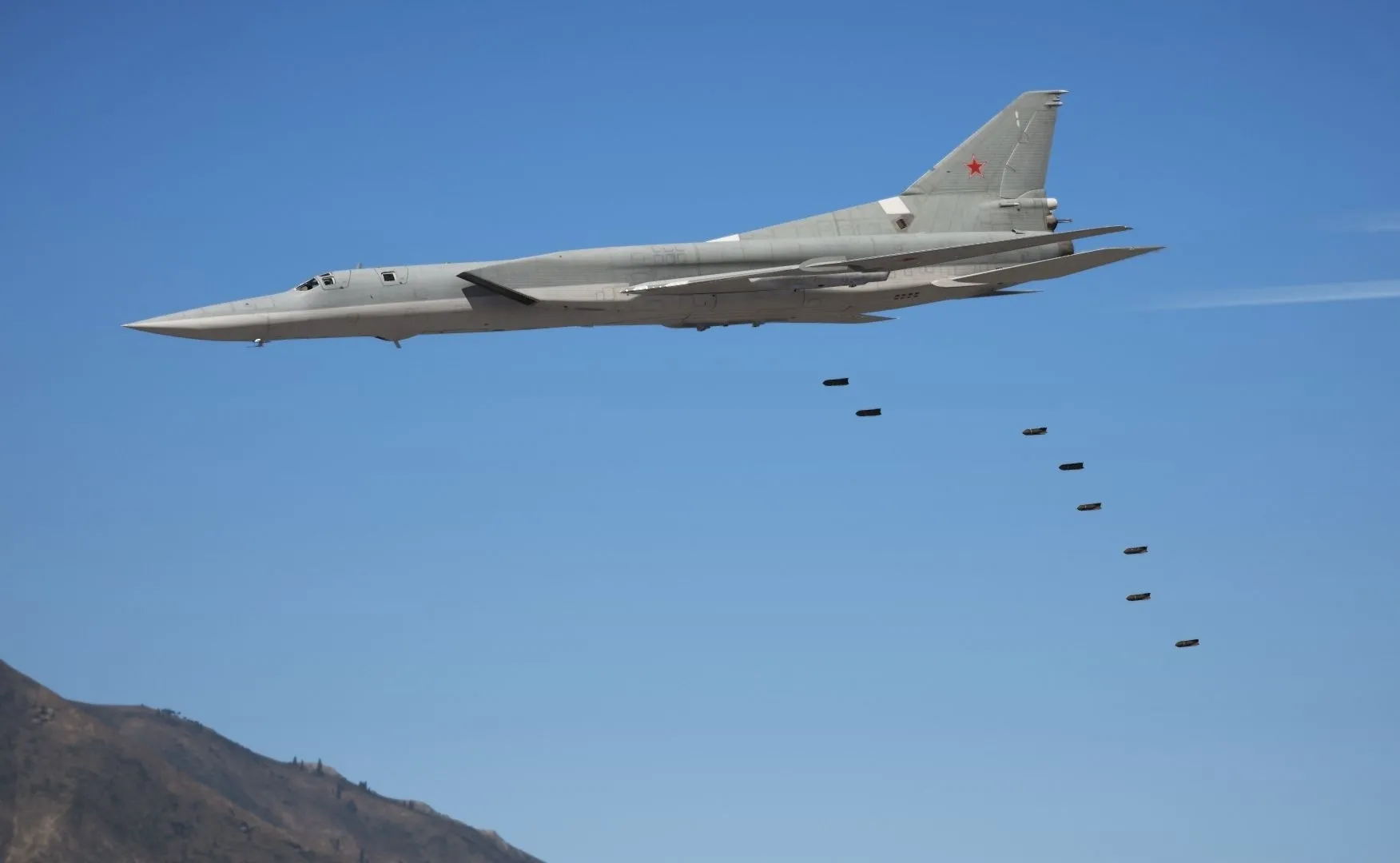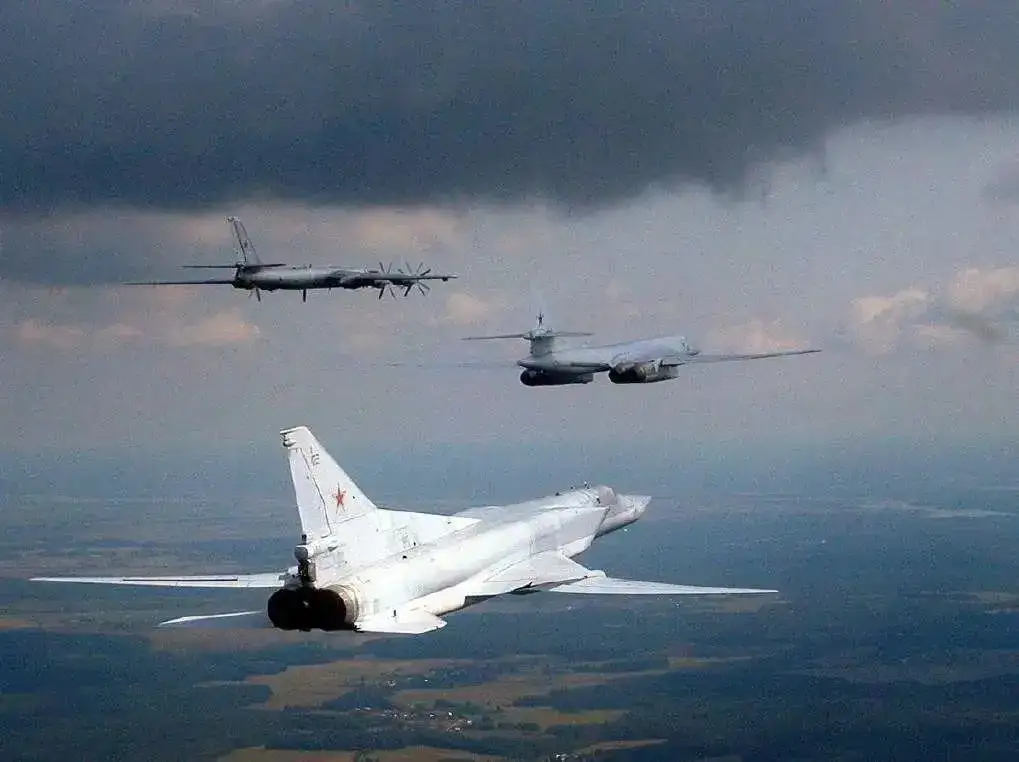 俄罗斯图-22M3“逆火”远程轰炸机:是一款可变后掠翼的远程超音速轰炸机,长42.46米,高11.08米,翼展34.30米,燃油重量54吨,最大武器挂载24吨,最大起飞重量126吨,最大飞行速度2.3马赫,最大升限18000米,作战半径2410公里,最大航程12000公里。可挂载3枚超音速远程巡航导弹 ,弹舱内有旋转发射架,可挂短距攻击导弹或精确制导炸弹,机尾有1具23毫米遥控机炮。主要用于摧毁地面和水面目标,俄罗斯空天军部队装备有约90架图-22M系列轰炸机。