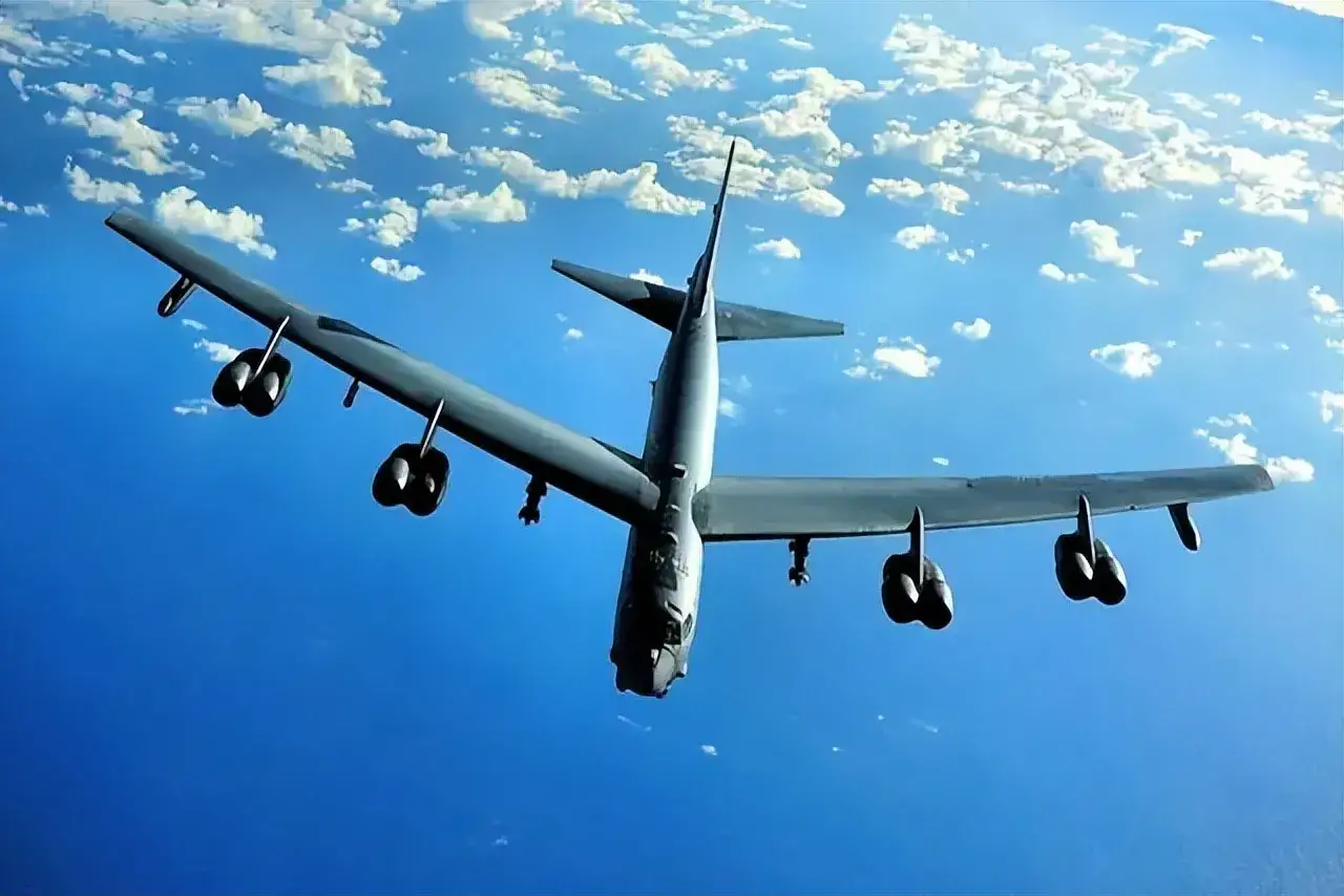美国B-52“同温层堡垒”战略轰炸机:由美国波音公司研制、首批于1955年服役,1962年停产,各型号共生产了744架,最后的型号为B-52H,采用8台推力17,000磅的普惠涡扇发动机,最大起飞重量220吨、航程1.6万公里、最大飞行速度1000千米/小时,最大载弹量32吨,配有1门20毫米六管机炮、曾投入到了越南战争、海湾战争、岛链威慑等行动中;美军现役76架最新型B-52H轰炸机。