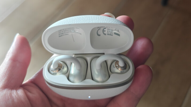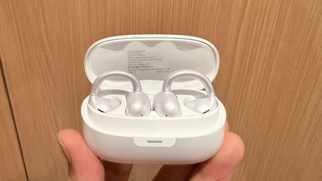 华为FreeClip外观设计亮眼,拥有星空黑、流光紫、暖星云等多款配色,充电盒圆润磨砂质感,颜值与辨识度都很突出。单耳5.6g,搭配开放式耳夹造型,C形桥采用镍钛合金搭配亲肤TPU材质,佩戴贴合无压迫,日常佩戴稳固,大幅运动时会略有松动,更适合日常及轻运动场景。