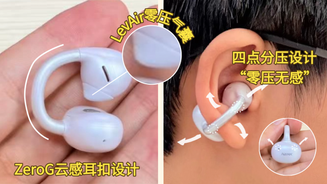 南卡ClipSuper2对佩戴结构进行全面升级,搭载全新ZeroG云感耳扣与LevAir零压气囊组合,借助微气压缓冲和四点分压设计,实现零压悬浮式贴合。单耳仅4.8g,长时间通勤或高强度运动都能稳固佩戴且无压迫感。连接桥采用航空级钛合金与高分子记忆材质,可自动适配耳廓轮廓并分散压力,反复弯折多次也不易变形。这款耳机在佩戴舒适度、稳固性与耐用性上都表现出色,综合体验在同价位产品中具备明显优势。