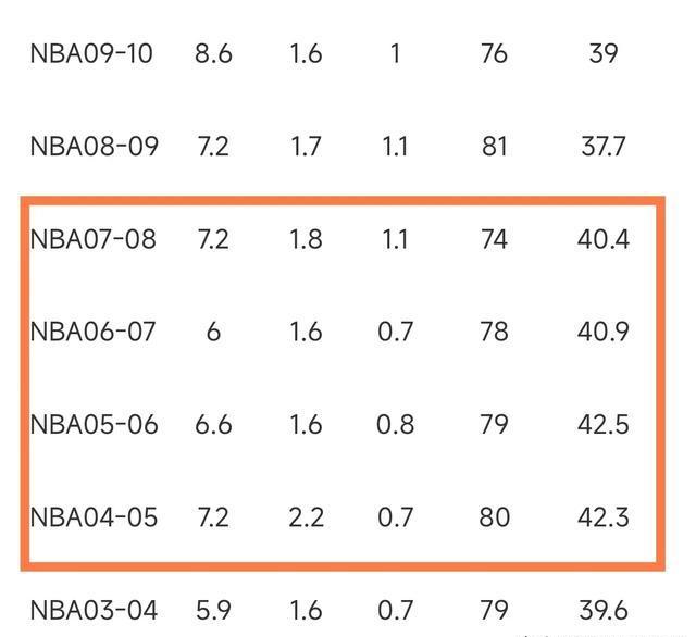而詹姆斯在2004~2008赛季,连续4个赛季的场均出场时间都超过了40分钟。但在之后的出场时间,再也没有超过40分钟。