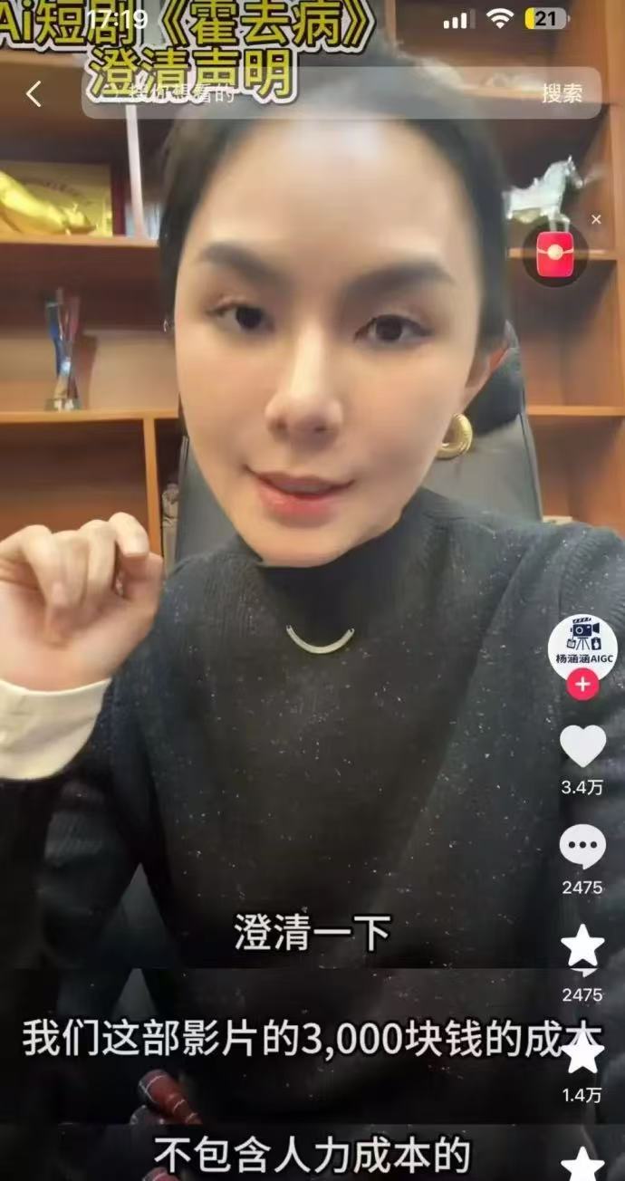 近日,一部名为《霍去病》的国产AI短剧爆火的消息刷屏全网,“3000元成本、3人团队、5天产出80集、播放量5亿”的相关话题更是直接冲上热搜,引发全网对AI影视创作的热议。但这份看似“颠覆行业”的成绩单,很快就被打脸——该剧导演杨涵涵接受记者采访时明确表示,这些言论均不属实,系“以讹传讹”,其本人也已发布视频予以澄清。