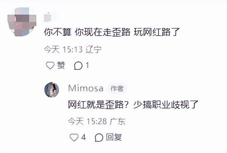 然而,还有网友看到米米选择当网红,毫不留情的嘲讽她:你不算(演艺世家的一份子),你现在走歪路,玩网红路了。