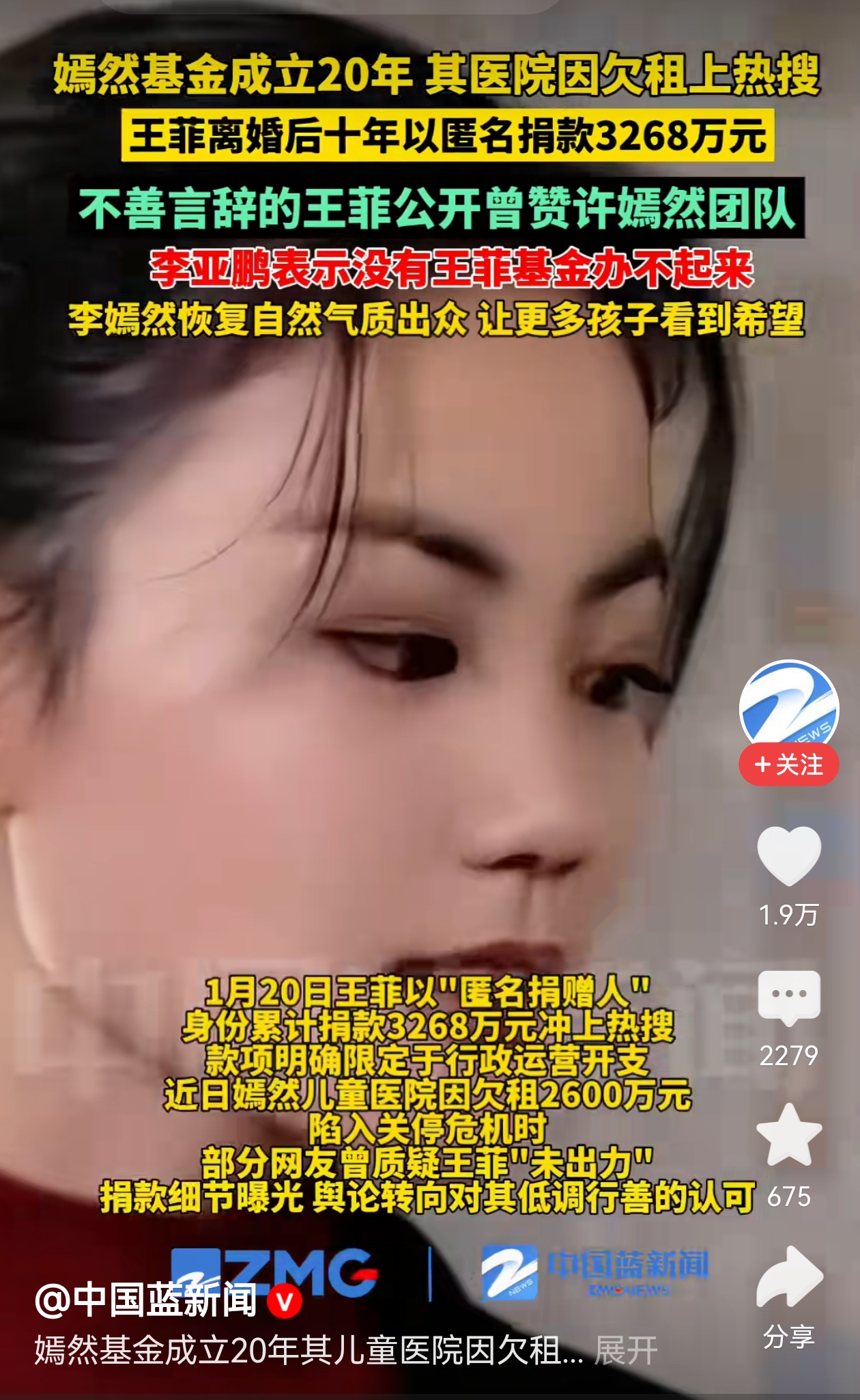 从目前来看,嫣然停办的可能性逐渐变小,最新的数据显示,这个寒假又有近200名唇腭裂患儿预约了手术,这项公益不能停,也不会停,很多明星和爱心人士已经在行动,相信李亚鹏和王菲当年的那份善意还会延续下去!