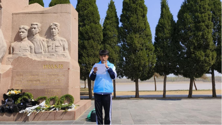 活动伊始,在泺口九烈士纪念碑前,全体师生整齐列队,庄严肃立,向李春亭、孙善帅等九位烈士默哀致敬。教师代表与学生代表向烈士敬献鲜花,以表崇敬与追思。医学技术系23级医学影像技术专业张贵哲作为学生代表发言,深切表达济护师生对先烈的追思,展现出新时代学子的精神风貌。