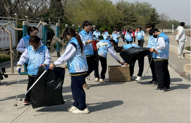 祭扫仪式完毕,志愿者纷纷拿起夹钳与环保袋,沿着黄河岸边有序开展垃圾清理行动。济护师生团队用实际行动守护山河,传承先烈奉献精神,践行绿色发展理念。