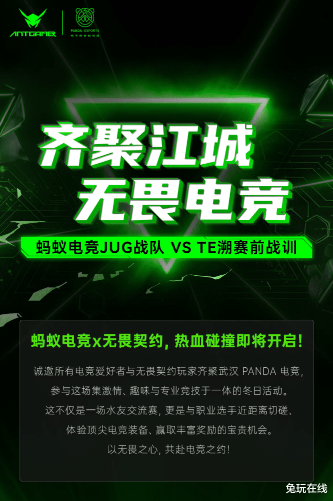 从TGA无畏契约ANTGAMER全国挑战赛打通“草根→全国赛”的晋级通道,到落地武汉的“职业战队+普通玩家”互动活动,蚂蚁电竞正在把“全民电竞”的理念从赛场延伸到线下场景。正如活动标语所言:“以无畏之心,共赴电竞之约”——这场在武汉的冬日狂欢,不仅是一次水友聚会,更是让“每个热爱电竞的人都能站上赛场”的实践:无论是想证明自己的操作,还是想近距离接触职业选手,都能在这里找到属于自己的“电竞时刻”。