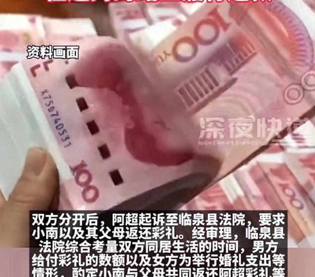 信息来源:“陕广电报后浪视频官方微博”——(女子拒还26万彩礼让母亲去受拘留:“大不了你先关进去一天,后面再救你。2月5日,上海高院发布一案例:男女双方经人介绍认识,在2022年11月举行结婚仪式开始共同生活,但并未办理结婚登记,2个月后因性格不和选择分开。)