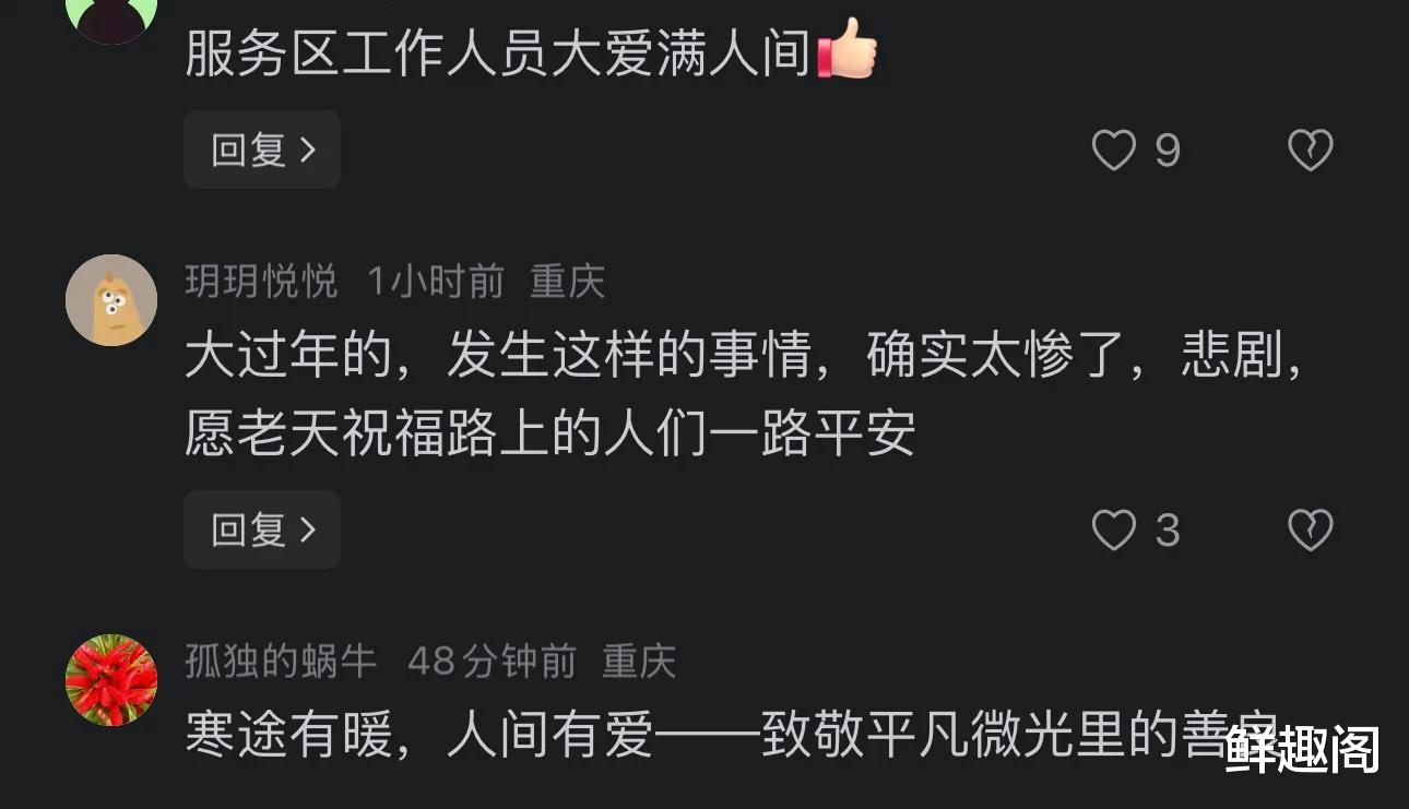 这件事情让我们感到暖心和感动,在异乡的高速公路旁,一群素不相识的人,用一份份热乎的饭菜、一个装满捐款的信封、一段驱车百里的探望,给这个悲伤家庭的归途中,点亮了一束温暖的光。最后,我们愿逝者安息,愿生者坚强,也愿这份善意,能抚慰所有远行人的伤痛。