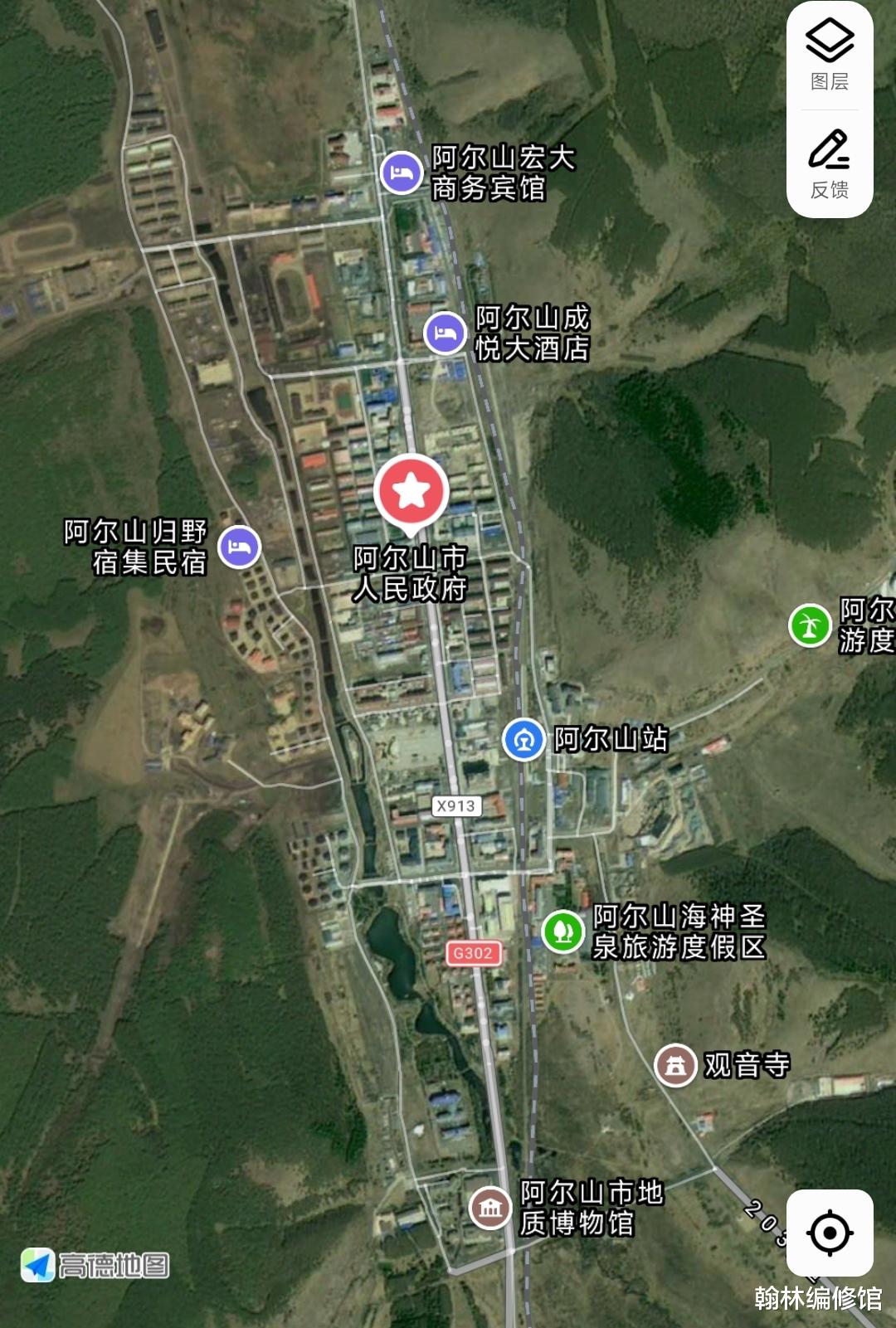 阿尔山没有大都市的环线、高架和错综复杂的路网。它的市中心可以概括为“一条主干道、几个广场、若干街区”。