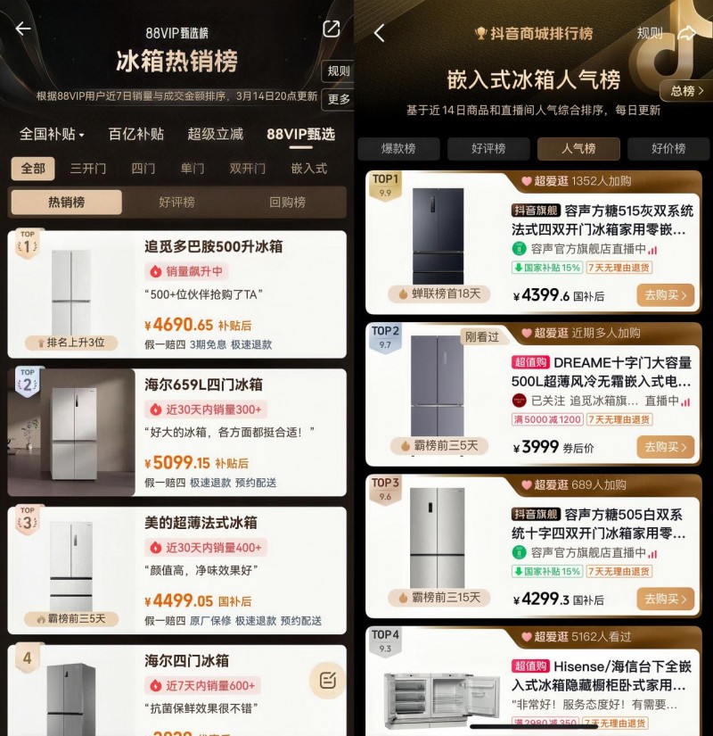 市场数据是最有力的证言,追觅冰箱在2026开年交出了一份现象级答卷。借势春晚全民热度,春节档抖音电商销售额环比激增300%,官方旗舰店日均场观暴涨7860%,C端热度持续井喷。承接AWE展会势能,追觅冰箱一举登顶天猫88VIP甄选榜冰箱热销榜TOP1,同时跻身抖音嵌入式冰箱人气榜TOP2。渠道端签约踊跃,合作版图迅速扩张。从流量变现到榜单霸屏,从C端爆发到渠道共振,追觅冰箱用实打实的战绩,印证了技术战略的绝对正确与品牌价值的强势跃升。