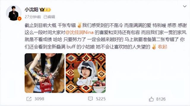 这不,7月2号,小沈阳坐不住了,直接在社交平台上回应。他否认了“65张”的说法,还硬气的说:“截至到今天,沈佳润专辑销量大概在千张左右”。