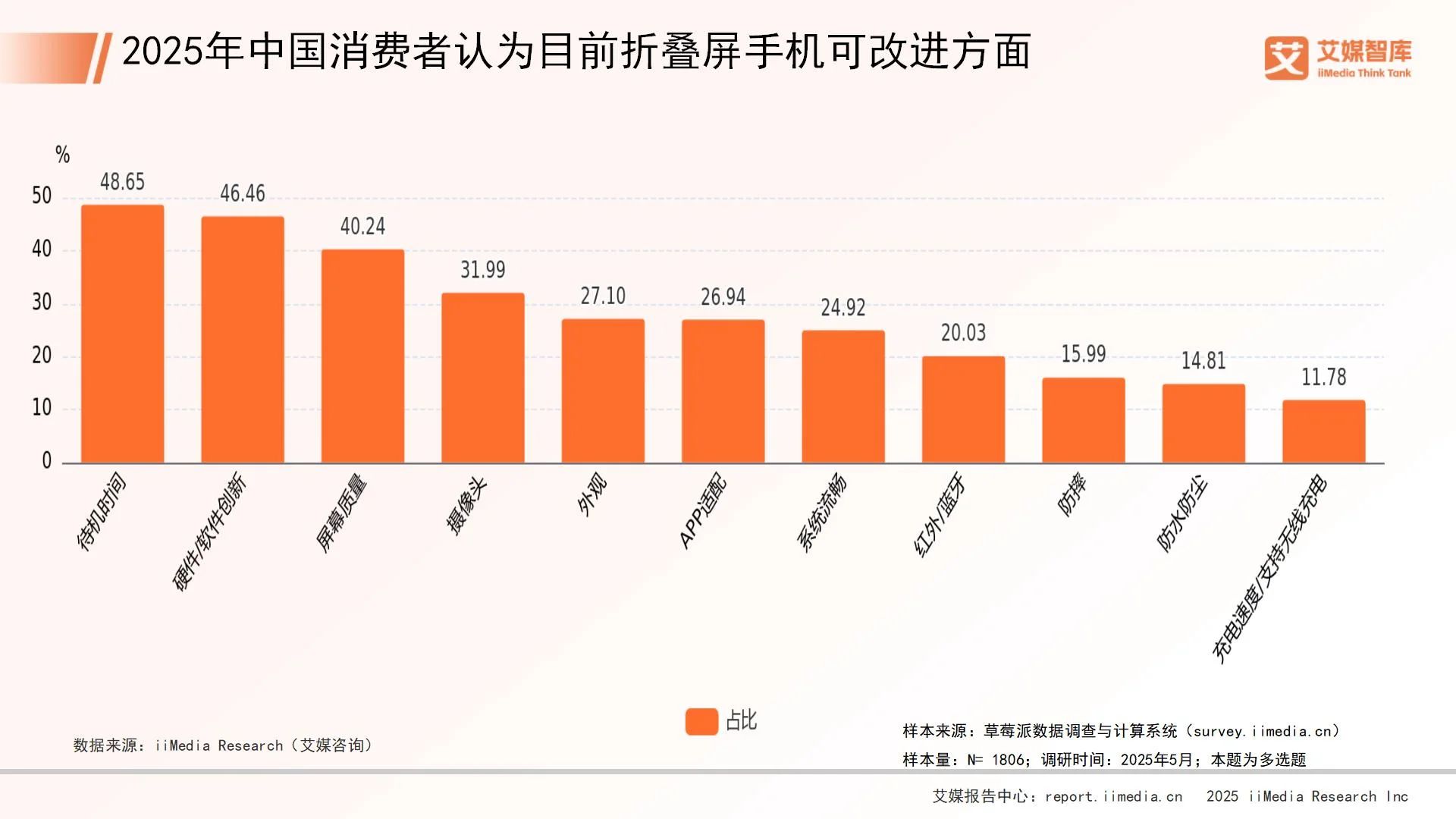 2025年中国消费者认为目前折叠屏手机可改进方面