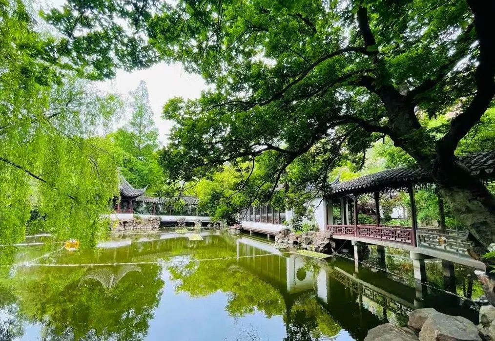 站在湖边,看着波光粼粼的水面上倒映着廊阁亭台,感觉整个人都被江南的诗意包围了。