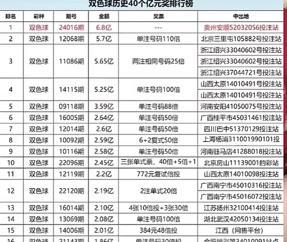 在2月6日这个特殊的日子,福彩双色球开奖迎来了兔年的最后一期。当晚的开奖结果震惊了全国彩民——136注一等奖中,竟然有133注出自贵州安顺市平坝县的同一个投注站,奖金总和高达6.8亿。这一数字不仅超越了之前2.2亿和5亿的中奖纪录,更让这位幸运儿一跃成为了中国彩票史上最大的赢家。