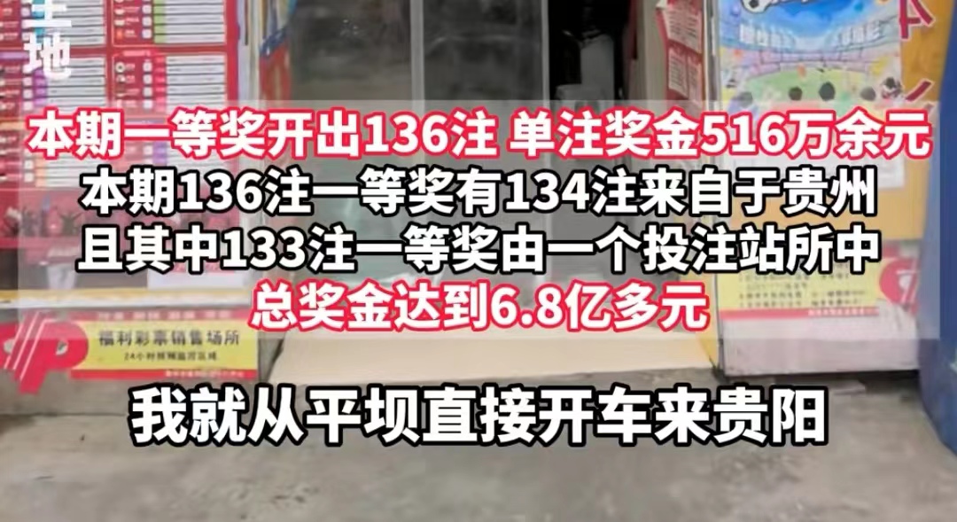 这一巨奖的诞生地位于贵州安顺市平坝县的一个投注站,136注一等奖中,有133注出自这里,奖金总和高达6.8亿。如此惊人的中奖纪录,不禁让人惊叹这位幸运儿的运气之好。