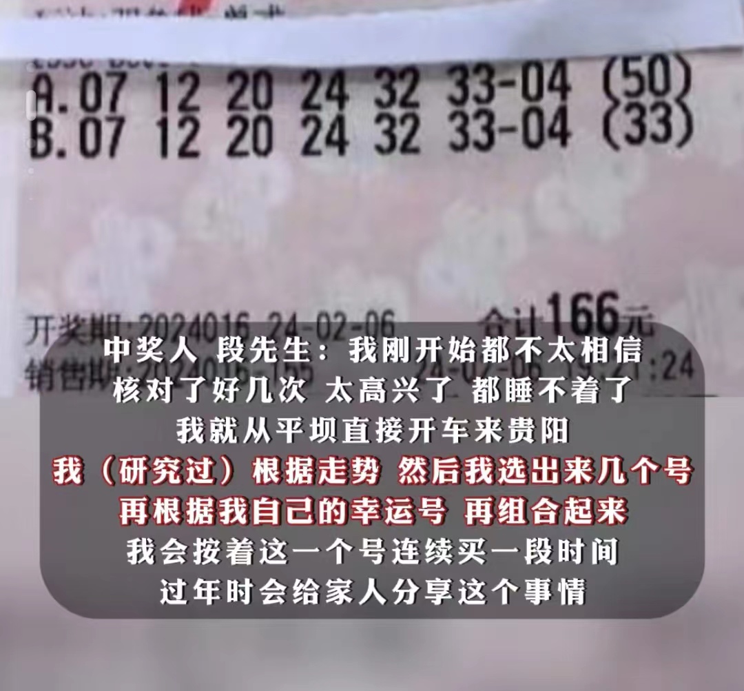 随着中奖者的现身,一位年仅28岁的小伙子段某成为了众人瞩目的焦点。他大方地接受了记者的采访,分享了自己的中奖经历。段某表示,他平时也会做点生意,这次的中奖号码是他根据多年研究中奖走势图加上自己的幸运号选出来的。当得知自己中奖后,他激动得一宿没睡,第二天便直奔贵阳领奖。