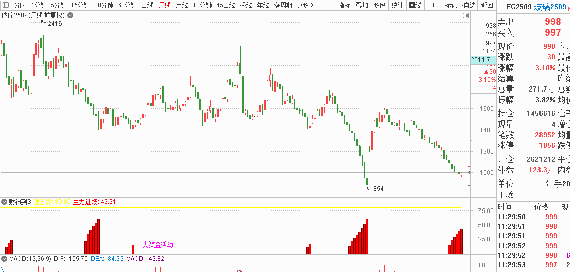 等了三个星期,今天玻璃抄底了,均价998,一个底仓,破952的新低就跑,没破就拿。