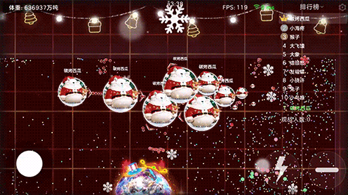 红白皆危险:地图上飘落的白色雪花和红色雪花都不能碰!碰到它们就像扎到刺一样,体积会瞬间被削减,辛苦攒的球球一夜回到解放前!