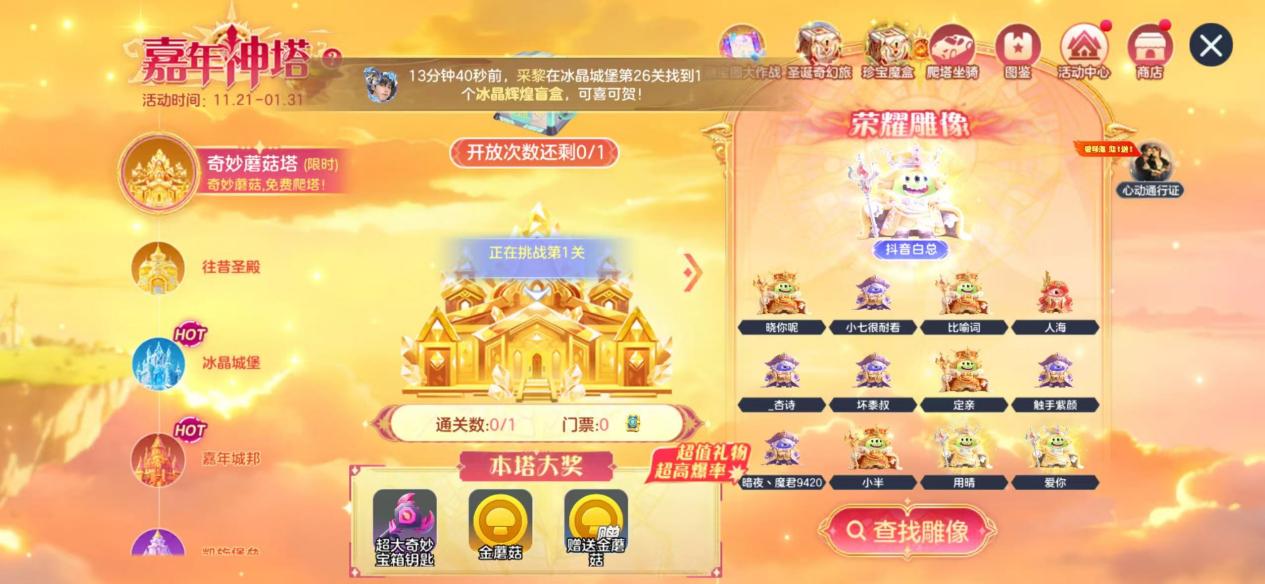 2. 免费蘑菇塔限时开启(12.19-1.3)