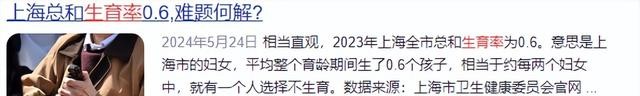 【2】澎湃新闻——《上海总和生育率0.6,难题何解?》2024.5.24。