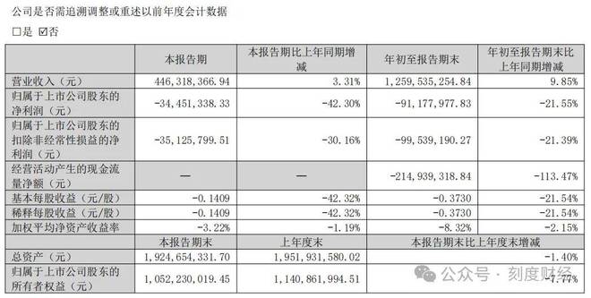 从盈利表现来看,公司已陷入连续亏损的困境。前三季度归母净利润亏损9117.8万元,同比扩大21.55%,扣非归母净利润亏损9953.92万元,亏损幅度进一步加大;单季度数据显示,2025年第三季度公司亏损3445万元,同比下滑42.3%,亏损速度呈加速态势。
