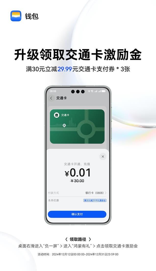 升级原生鸿蒙再享华为钱包交通卡&负一屏元服务多重福利