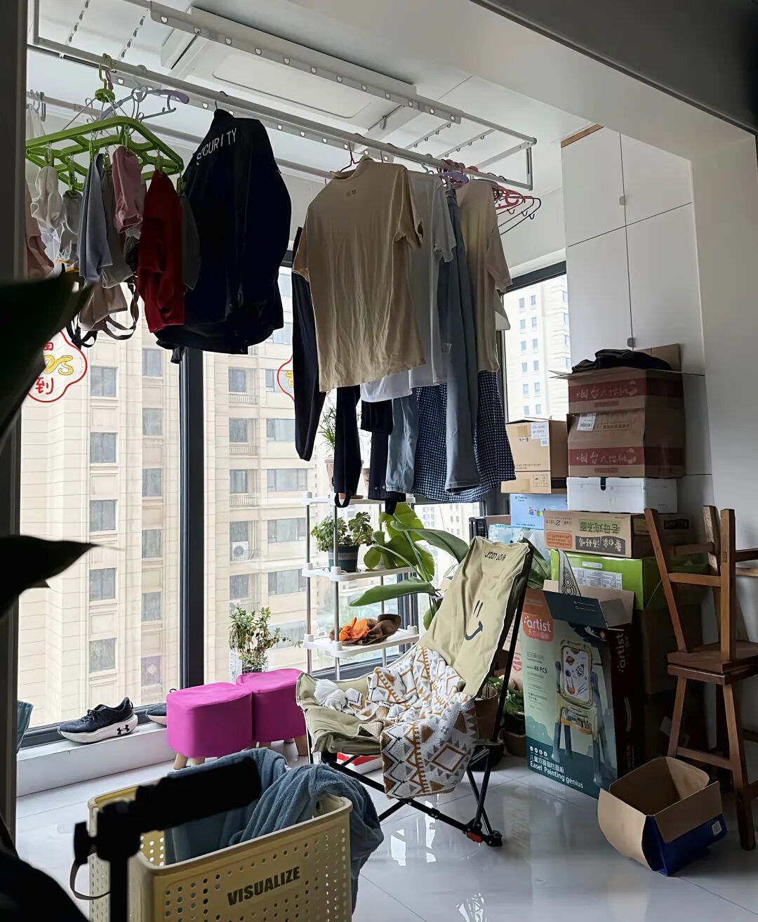 衣服不要乱扔,当季衣服挂起来,过季衣服藏床底或者柜子里,不要把卧室变成“衣服仓库”,这样卧室看起来才清爽,睡觉的时候也会更踏实。