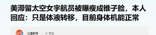 信息来源:红星新闻-《美滞留太空女宇航员被曝瘦成锥子脸,本人回应:只是体液转移,目前身体机能正常》