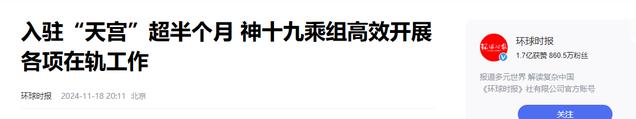 信息来源:环球时报-《入驻“天宫”超半个月 神十九乘组高效开展各项在轨工作》