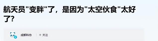 信息来源:成都科协-《航天员"变胖"了,是因为"太空伙食"太好了?》