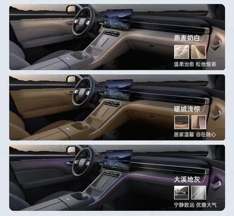 关于内饰部分,埃安AION i60提供三款车内配色—燕麦奶白、暖绒浅棕、大溪地灰3种内饰颜色供大家选择,使用悬浮式液晶仪表盘和中控屏设计,副仪表台为双层布局,具有掏空式储物空间。同时,中控台还使用木纹风格饰板进行装饰,整体层次感营造的比较到位,还配备了2个无线充电面板,方便手机快速充电。