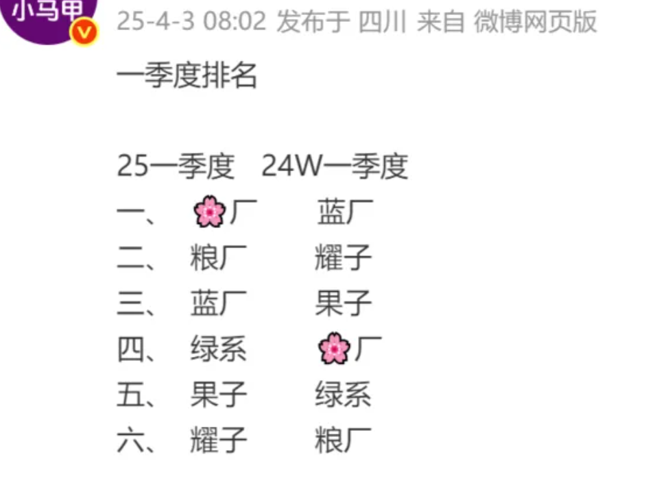 近期,有数码大V发布了2025年第一季度手机市场的销量排名,华为、小米登顶榜首,华为第一、小米第二。该博主此前还公布了3月17日-3月23日的手机激活量排名。而华为稳居第一,占比为17.7%,同比增幅3.2%;小米17.1%,增幅1.8%。