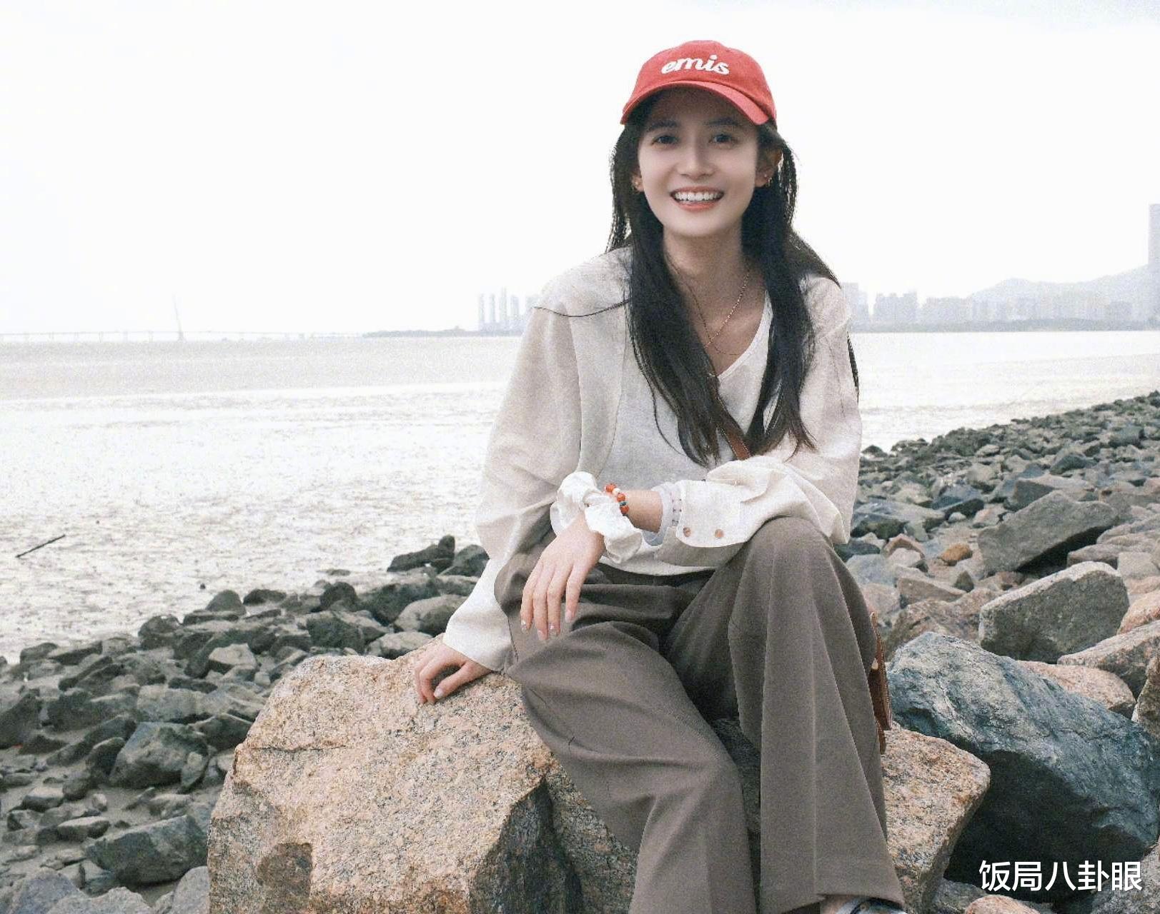 陈钰琪头戴鲜艳的红色棒球帽,为整体造型增添了一抹亮色。白色的宽松上衣,材质看起来轻柔又透气,随性地勾勒出她的身形。搭配的深棕色阔腿裤,简约大气,与上衣的搭配相得益彰,既显时尚又不失舒适感。