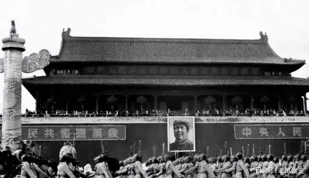 1949年10月1日,当毛主席站在天安门城楼上庄严宣告中华人民共和国成立时,他的头顶上方正是这幅经过精心修改的画像。画像与真人同框,成为中国历史上最具象征意义的画面之一。