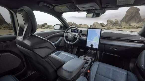 除了这项机能性改进外,福特也为2026款Mach-E推出改版的California Special套件。 虽然在性能上与 GT 版并无差异,但视觉与内装氛围提升不少。 套件包含变色漆面Rave Blue(带有蓝紫色调渐变效果)、搭配 GT/CS标字与空力饰条的20寸轮圈、车内银蓝色饰条与Navy Pier ActiveX+Miko运动座椅。