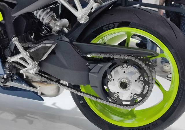 168KG的整备质量几乎能与450RR打成平手(青春版175KG),轻量化设计很出色。座高795mm,轴距1395mm,油箱容积15L,官方平均油耗4.8个。轮组为前轮120/70ZR17,后轮180/55ZR17。单摇臂版和双摇臂版配备电子快排、转向阻尼器和弹射起步模式。