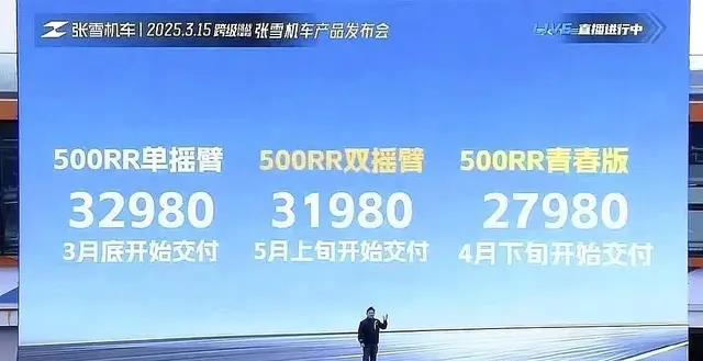 张雪机车终于发布了万众瞩目的四缸仿赛500RR,这也是张雪机车旗下首款车型:青春版27980元、双摇臂版31980元、单摇臂版32980元。起售价比凯越450RR(29980元)都还要低,让春风500SR VOOM(34980元起)很尴尬,更是让同为500CC仿赛但还未上市的无极RR500S难以招架。