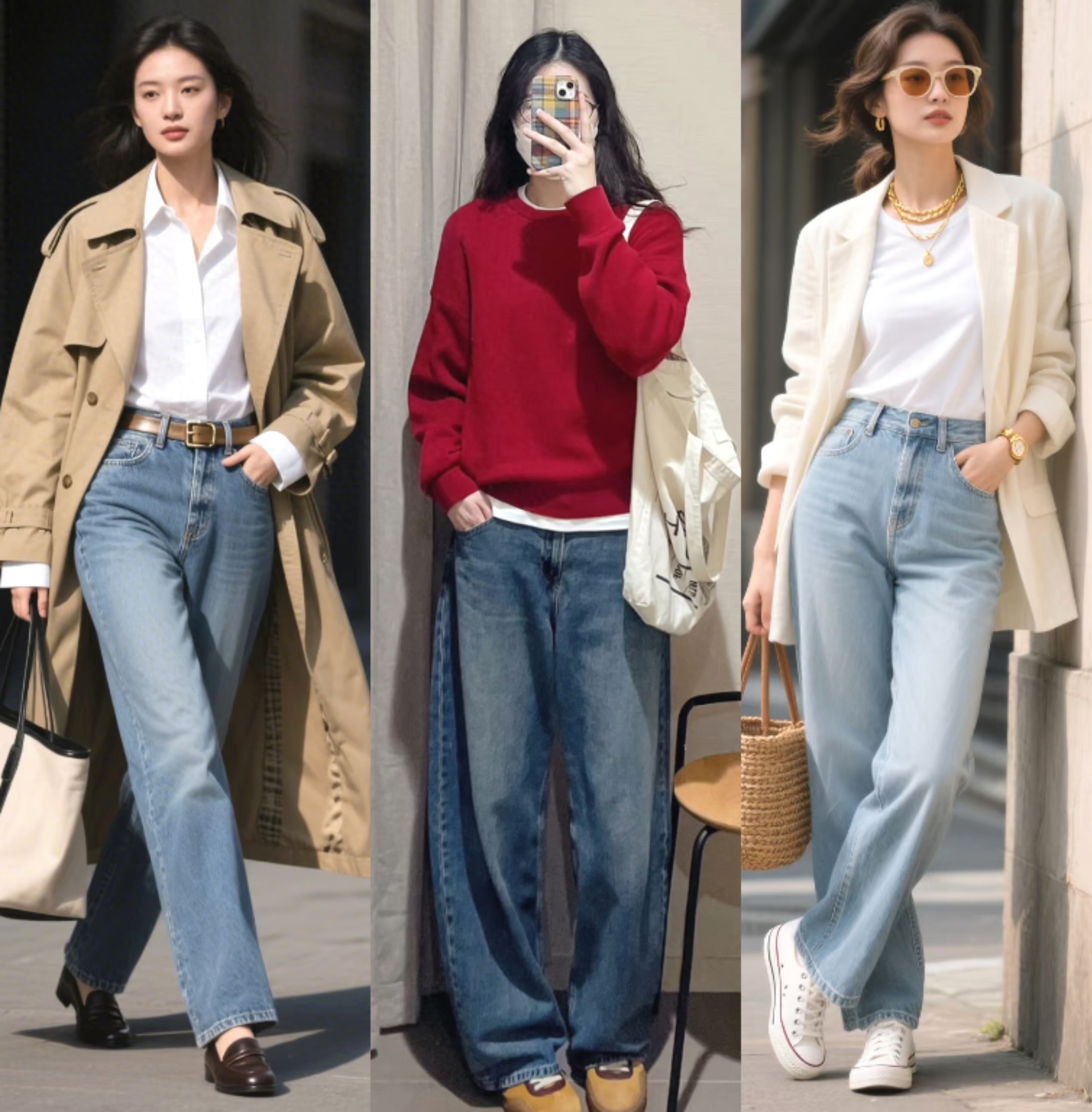 (一)直筒牛仔裤搭配思路