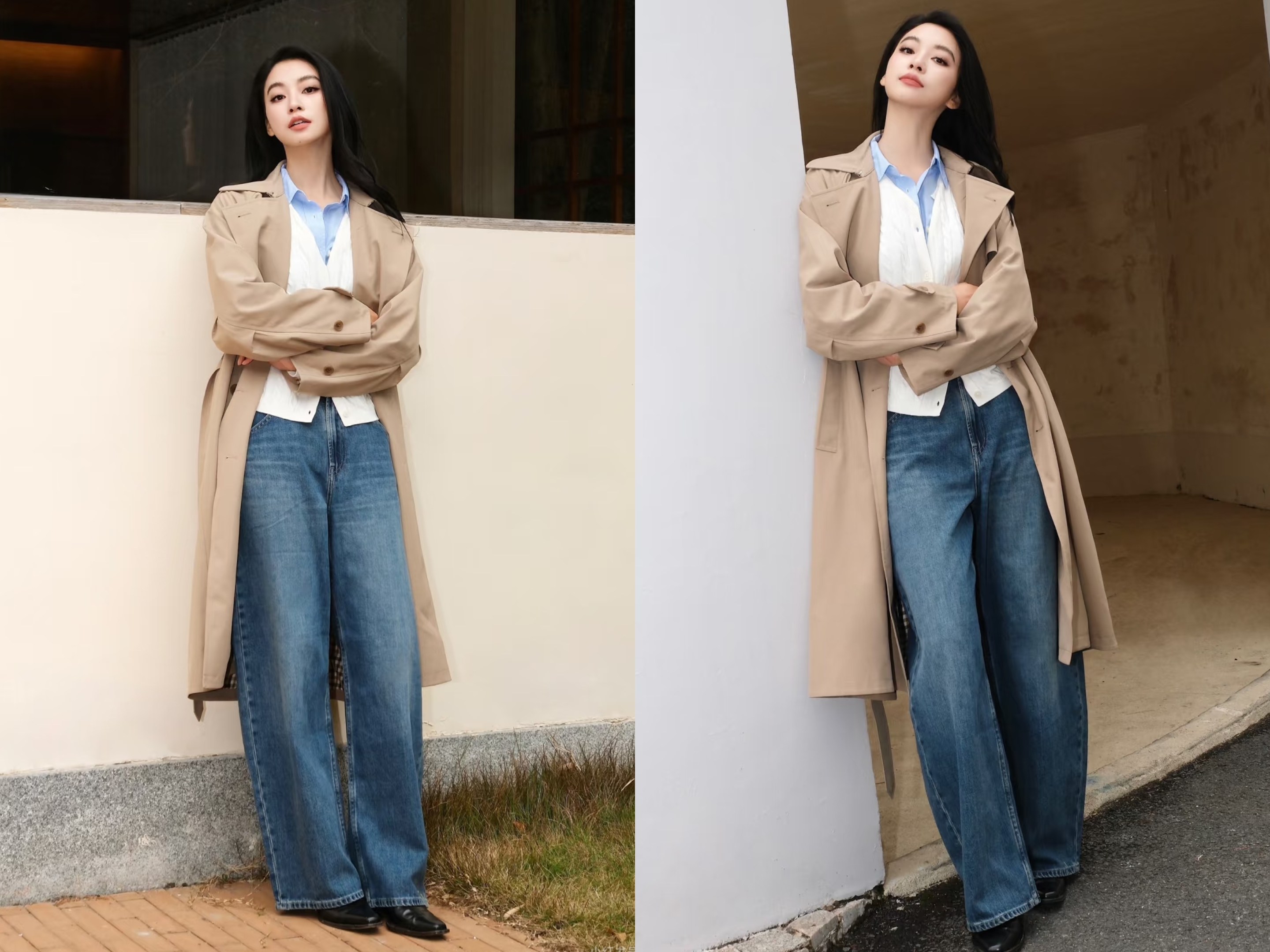 ✦思路②:弯刀裤+风衣,慵懒松弛有气场