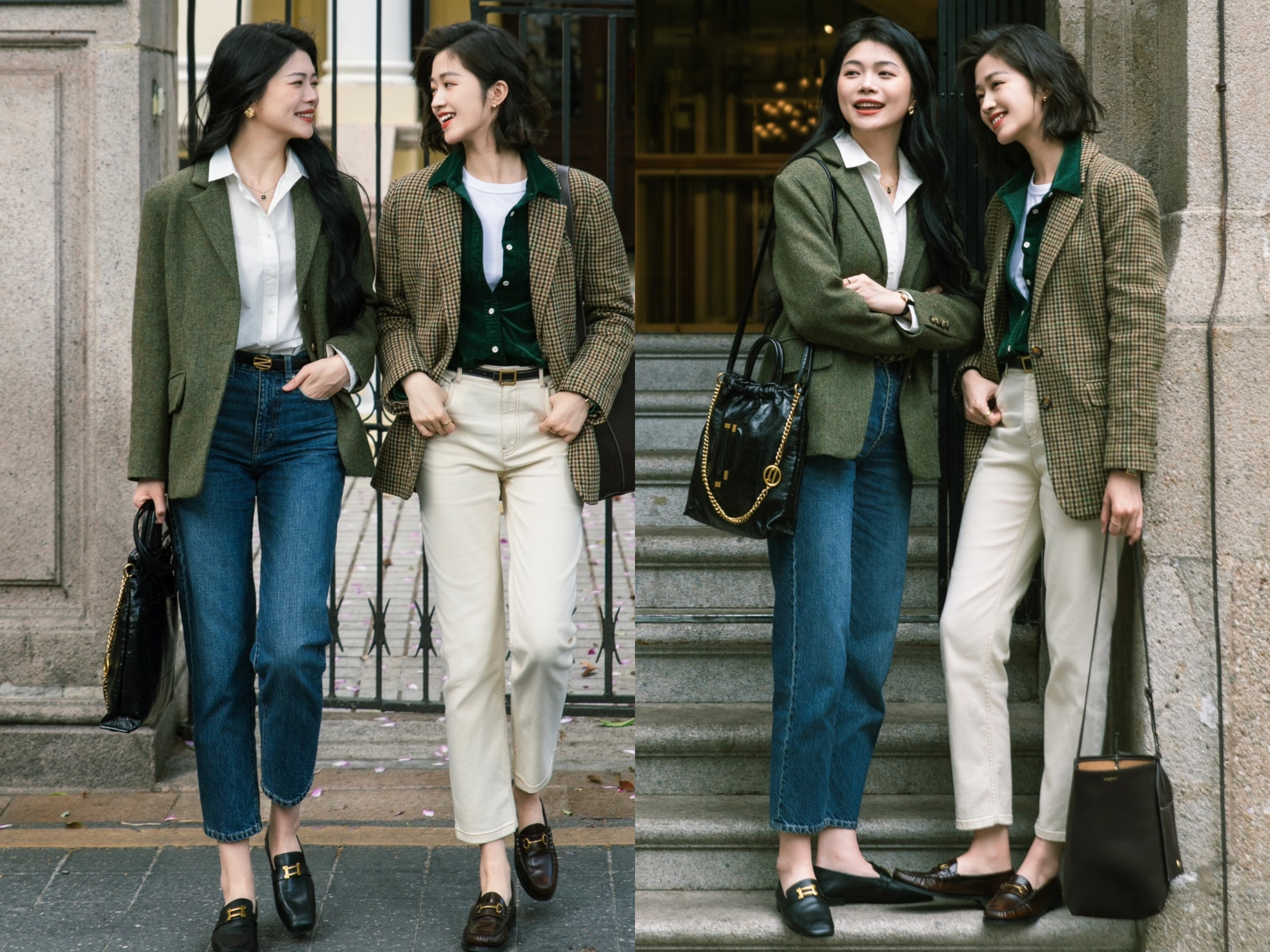 ①.职场通勤:九分裤+西装+乐福鞋