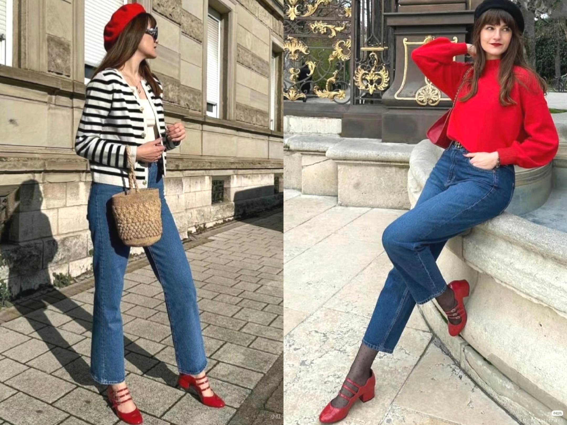 ②.休闲场合:九分裤+针织衫/毛衣+玛丽珍鞋