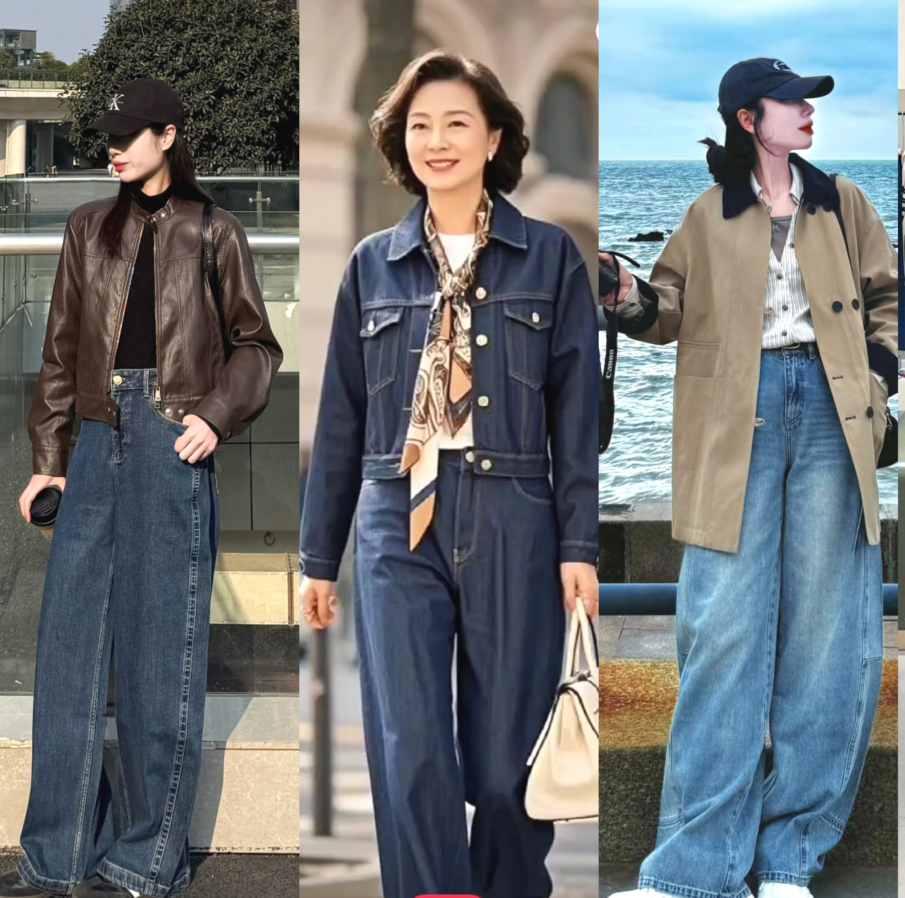 (二)阔腿牛仔裤搭配思路