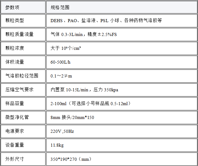 产生示踪粒子测试HEPA和ULPA过滤器效率过滤器及洁净间现场检测产生盐类气溶胶产生PSL小球流场示踪药物雾化、吸入式实验细菌、病毒溶液的雾化及动物感染染毒实验