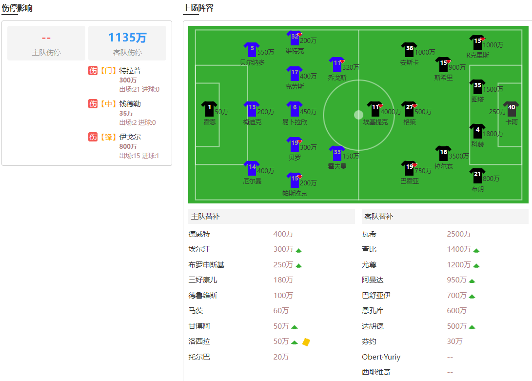 五、综合分析及预测综合考虑双方的实力、状态、以及历史交锋等因素,预计本场比赛将会是一场势均力敌的较量。法兰克福凭借更强的整体实力,在客场小胜波鸿的可能性较大。比分推荐:波鸿1-2法兰克福(防1-1平局,注:若临场亚盘退至平半且客队水位突破1.05,则需警惕冷门可能)