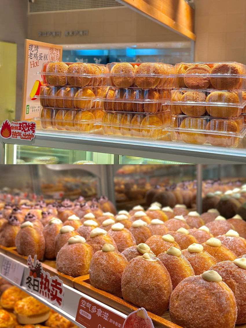 该集合店不仅卖糕点,还新增了茶饮和咖啡。具体来看,其烘焙产品,在保留桃酥、麻薯、绿豆糕等经典中式糕点的基础上,还新增了多拿滋、可颂、蛋挞等西式甜点。烘焙产品的价格整体延续了品牌一贯亲民的路线。